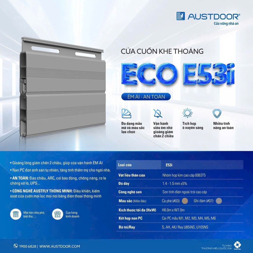 Cửa cuốn Austdoor ECO E53I – Mẫu mới 2025 | Êm ái, bền đẹp, tiết kiệm điện