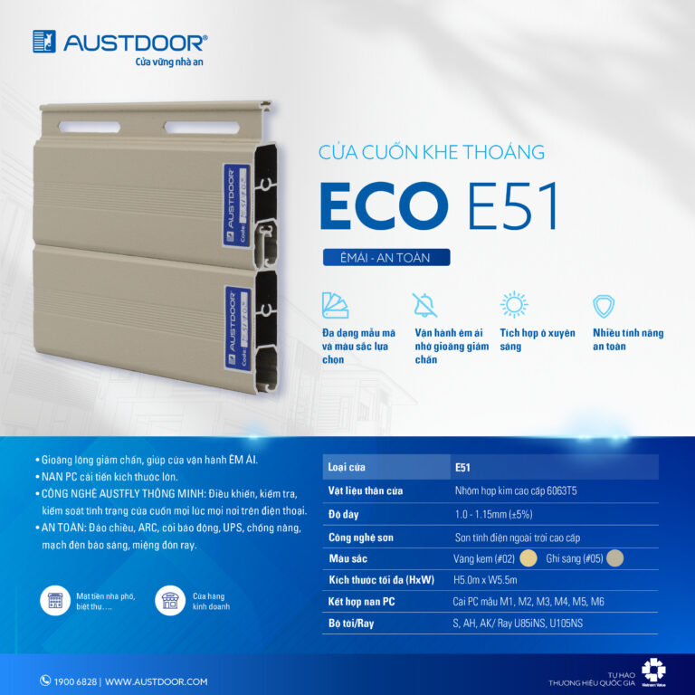 CỬA CUỐN AUSTDOOR E51 DÀY 1.0 – 1.15MM.